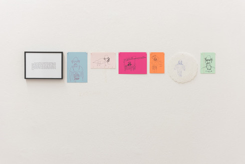 I think both forms of using language are effective in exposing the imperfect, constantly moving, often amusing, nature of conversation and interactions. Although the notes generally have less language, often dislocated words, phrases and diagrams, I find them more intimate and suggestive of the people writing them. The handwritten scrawls and drawings make for a more immediate, honest representation of communication.